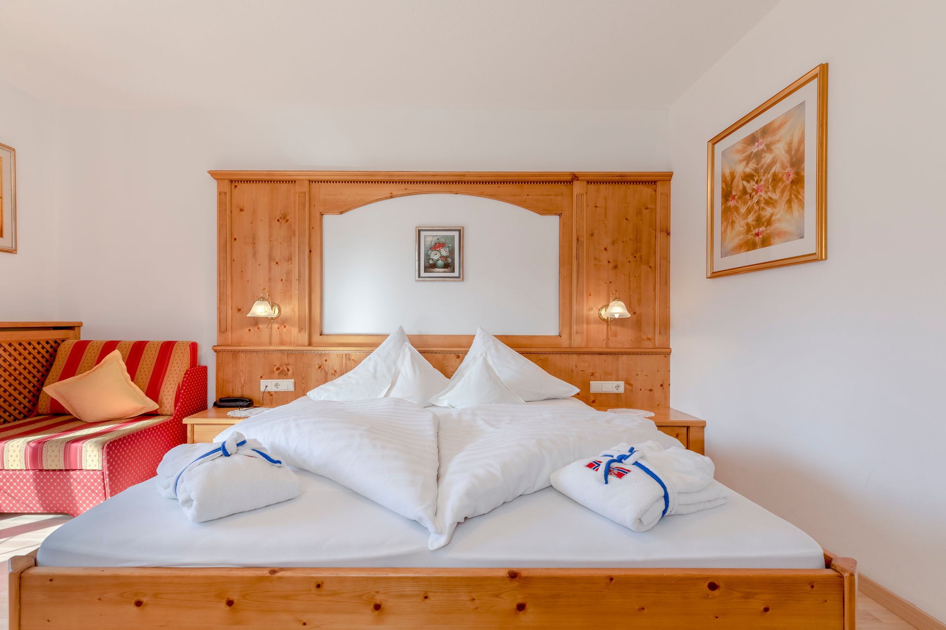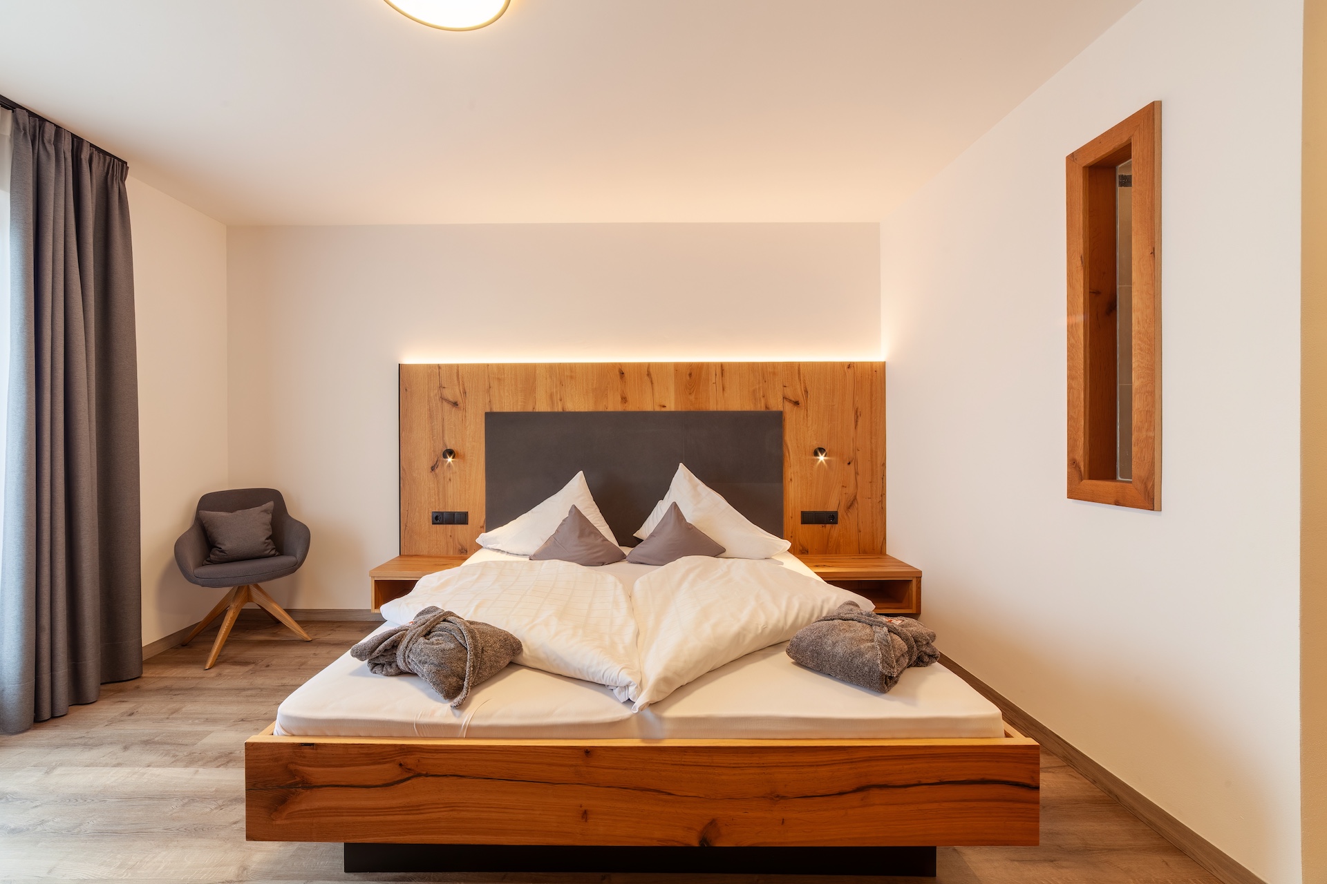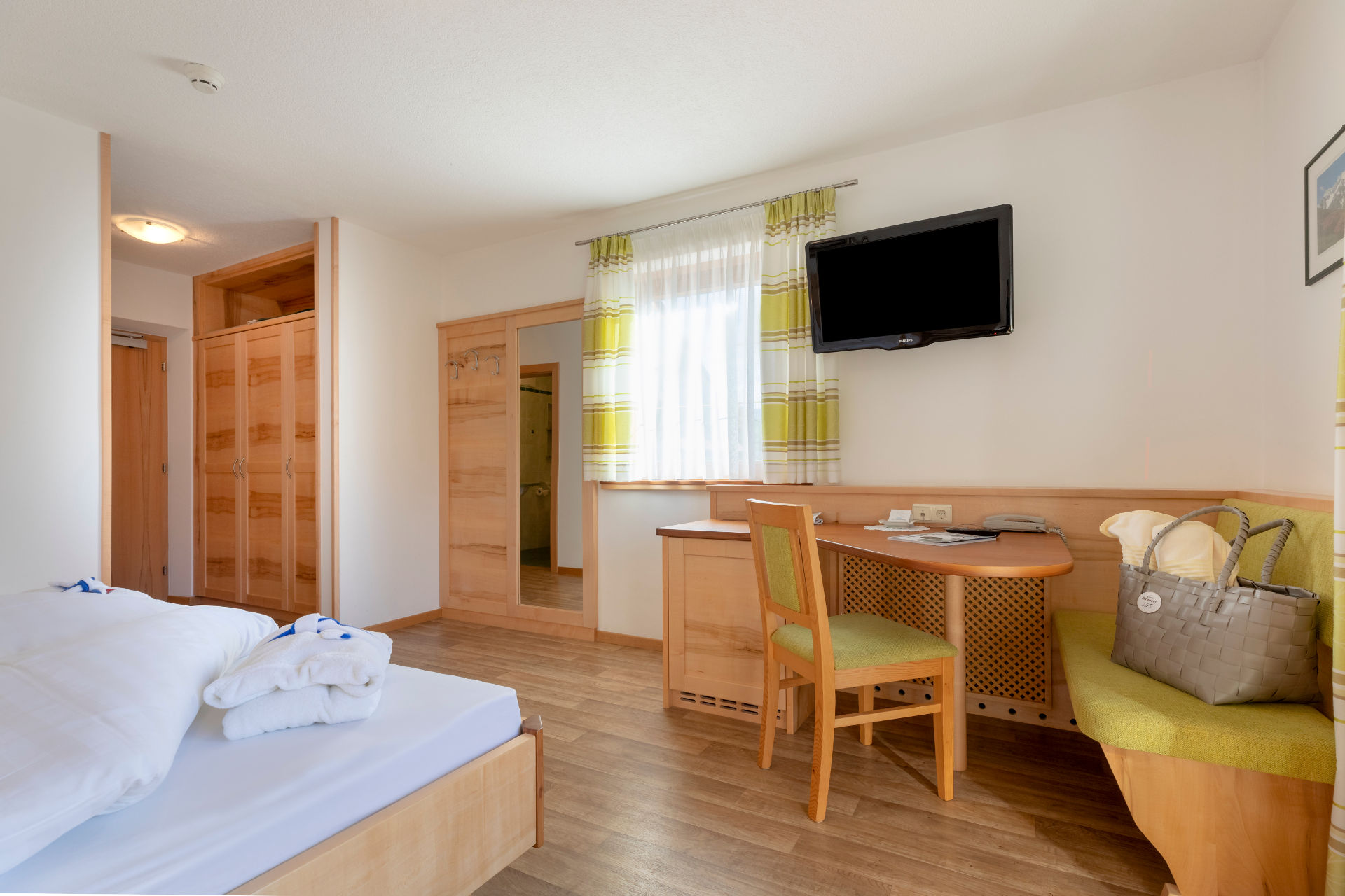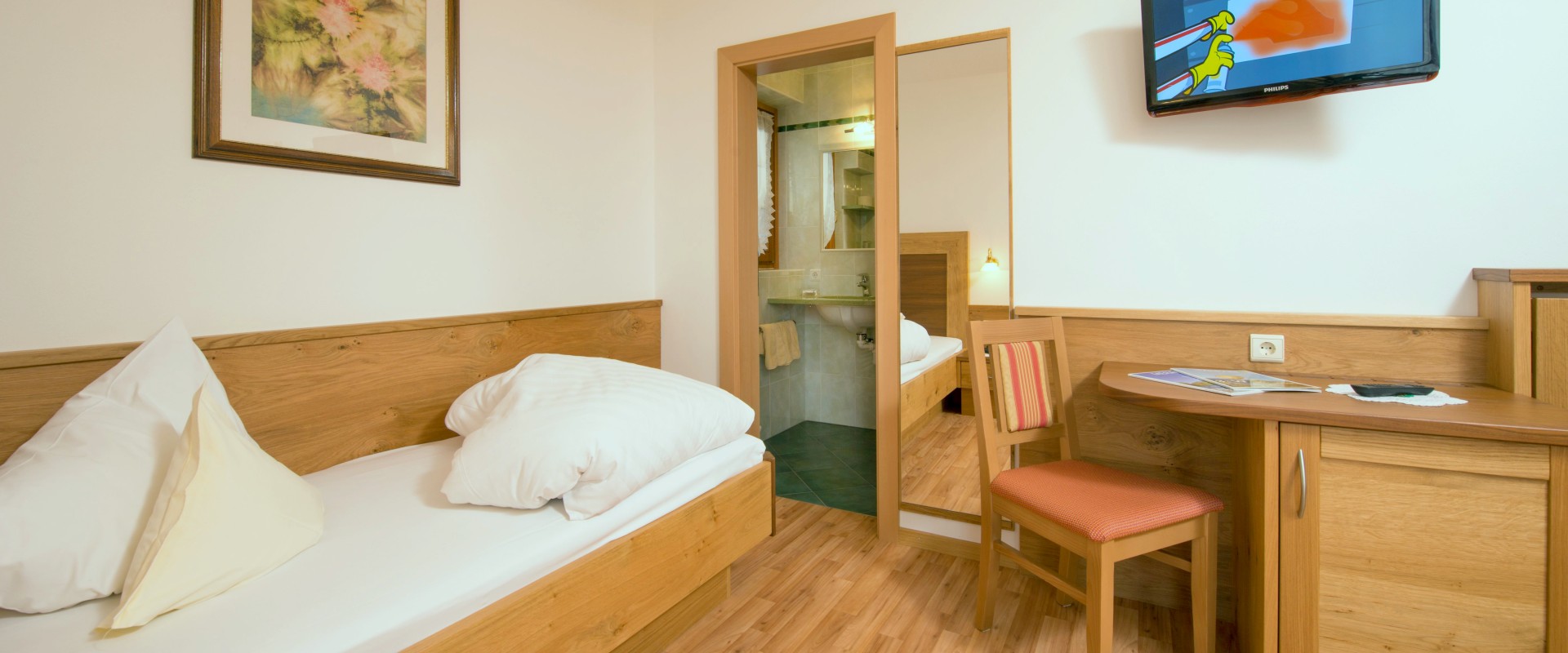 Unsere gemütlichen Doppelzimmer verfügen über einen großen Balkon mit Ausblick auf die Passeirer Bergwelt. Alle Zimmer bieten ein geräumiges Badezimmer mit Dusche & WC.