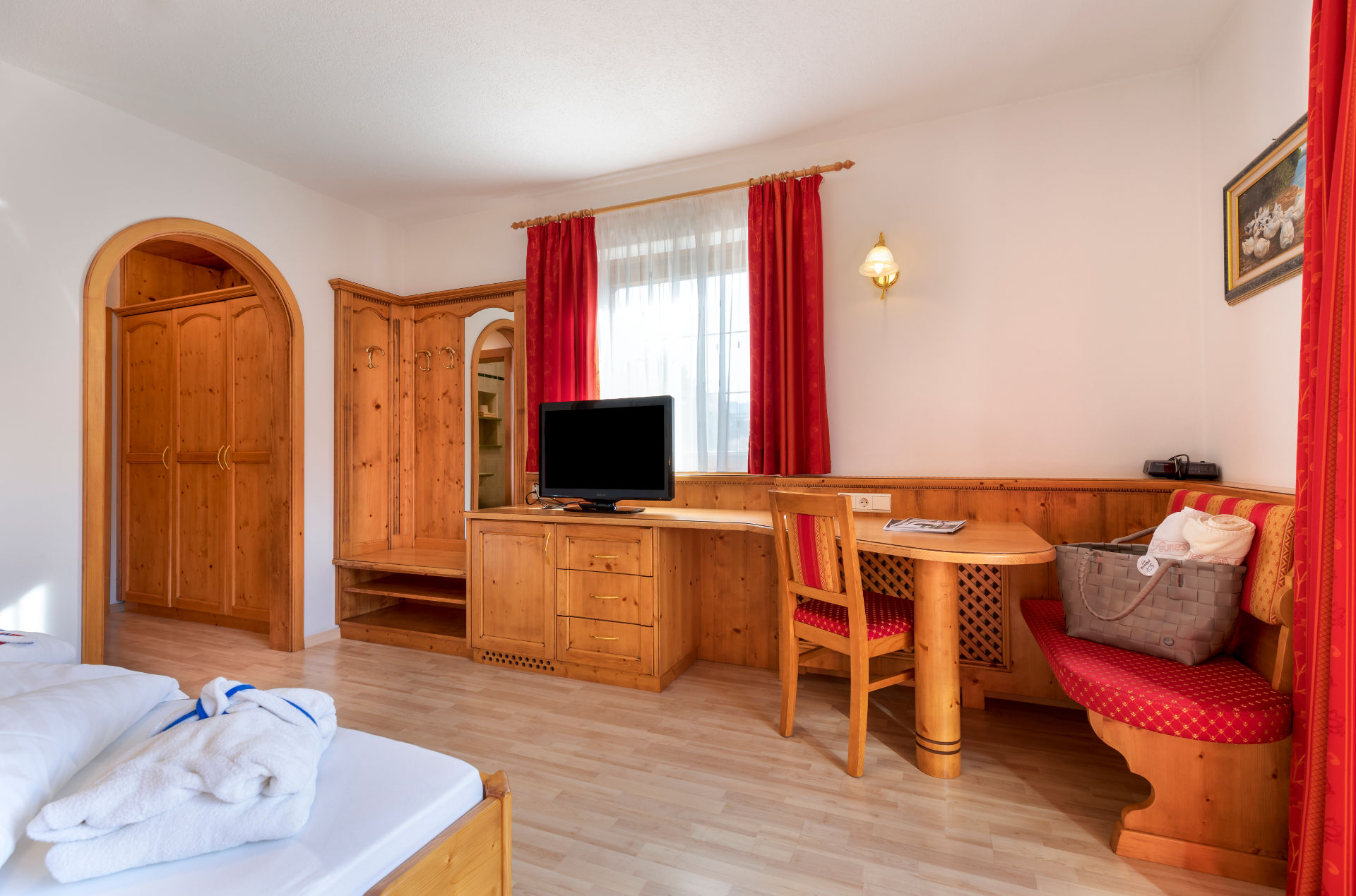 - Badetasche mit Bademänteln und Badetüchern im Zimmer